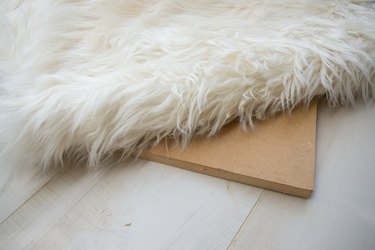 Screw the legs in at each corner using their accompanying brackets. Then, pull the fur tightly around the brackets and staple it in. Trim any excess fur with scissors.