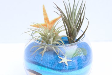 With its swirling layers of color, sand art is fun to create and gorgeous to behold. And when you top it off with tillandsia air plants, sand art can be the vibrant foundation of a glass terrarium. For a bold, modern look, choose sand colors that pop like pink, yellow and orange. Or, for a beachy vibe, select blues and turquoise. You can even use the sand to a draw a beach scene featuring an ocean, island and sky — and it's a lot easier than you'd think!