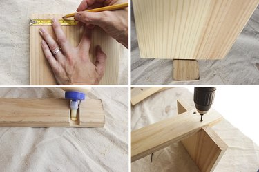 Starting from one end of the one-by-three pine board that you just cut, measure and mark 2 inches from one side, then 4 more marks spaced 12 inches apart. This will be the "spine" of the bookshelf.