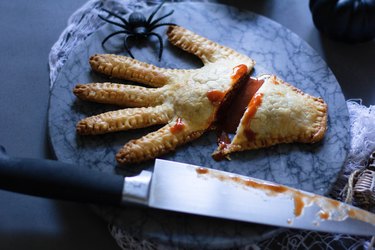 Win Halloween by serving a buffet of haunted hand pies. Take a shortcut using store-bought dough to leave more time to focus on the festivities. Featuring a severed hand meat pie, a creepy eye calzone, and shrunken head apple pies, you'll have an assortment of savory and sweet snacks to please a (costumed) crowd.