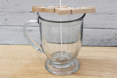 Keep the wick upright and centered by supporting it between two interlocked clothespins.