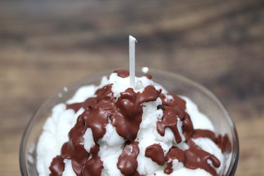 Drizzle the "chocolate" wax over the whipped cream. This detail adds realism and lusciousness to the candle.